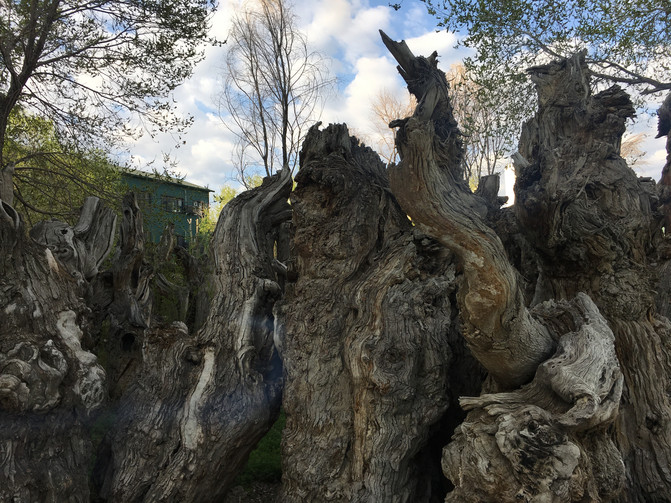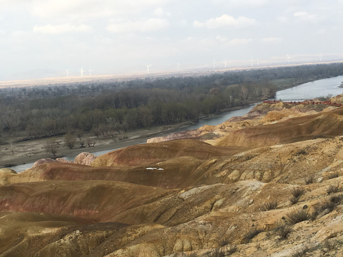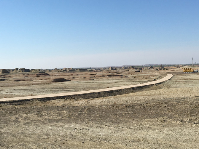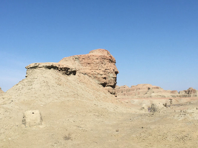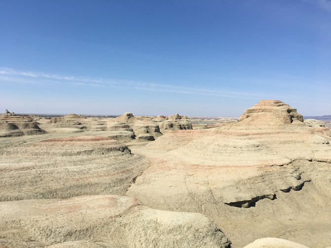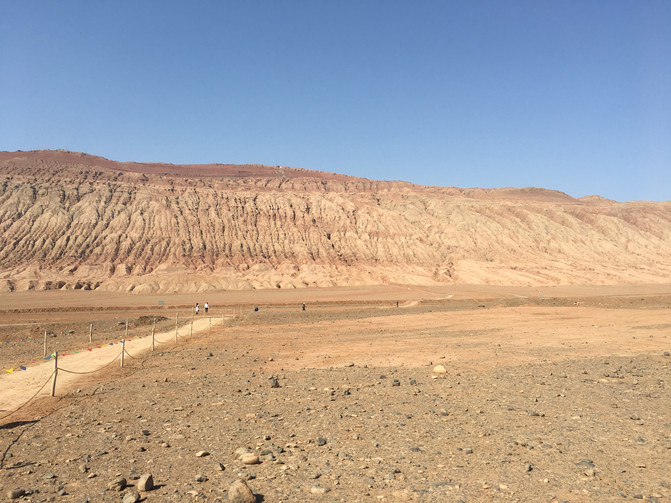 而脚下全都是干裂的黄土,黄土上面寸草不生,四周一片死寂。一圈下来,1个小时左右基本可以逛完。今天的午餐吃到了拉条子,加4个配菜,拉面是我吃过的最有嚼劲的面条。