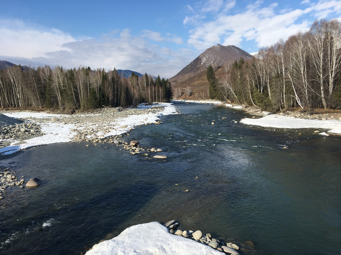 南岸则是成片的葱郁青翠的胡林杨,一副美轮美奂的河谷风光。