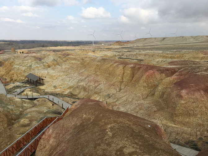 高处远观,你会赞叹它的壮观、雄伟、感叹大自然的鬼斧神工,四周被众多奇形怪状的土丘所包围,