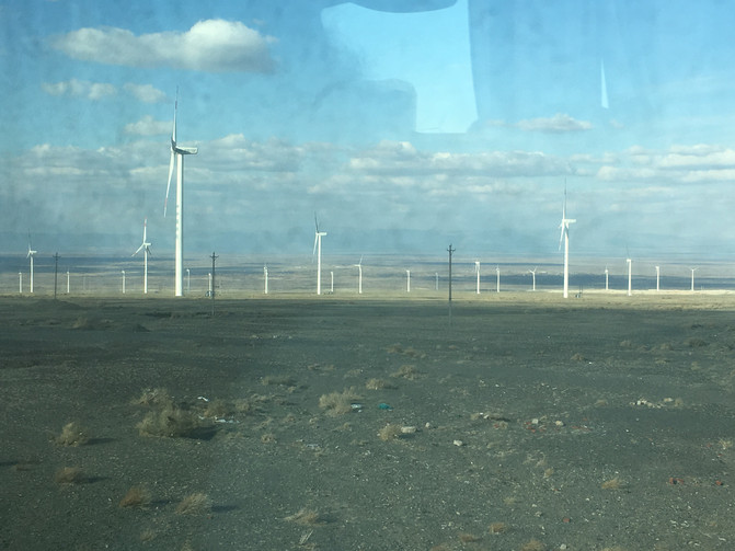 来疆旅游的第二日行程从早上八点准时出发。今天的行程只有一个:游览阿勒泰地区布尔津县的五彩滩风景区,导航距离650公里,9小时车程,实际时间远远不止,因为还要停靠服务区休息加上路况的因数,实际车上的时间要12个小时左右。中午停靠克拉玛依地区白碱滩的一个旅游饭店就餐,八菜一汤,菜肴味道还说的过去。因为新疆的和我们内地的的时差有2个小时,所以,当地人14点才吃午饭,20点过后吃晚饭。新疆的天气真的是一天四季,这一段路还阳光明媚,再开一段却是大雪纷飞,这一段路感觉好冷,下一段得脱下羽绒服。窗外的风景不断在变化,一会儿是大片的机械化种植的棉花、