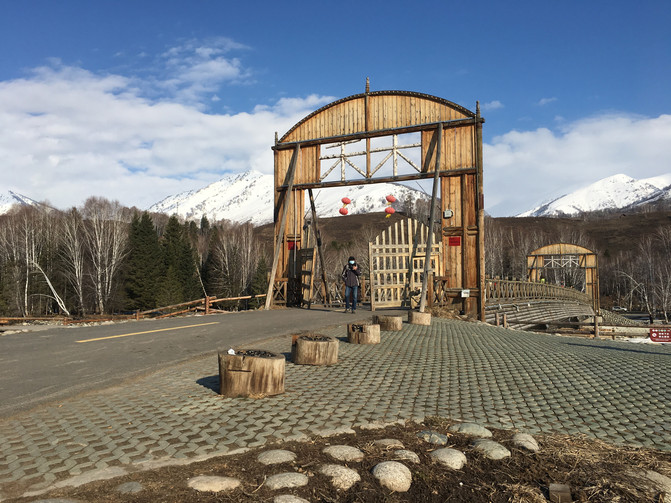 贾登峪是喀纳斯的门户,是通往喀纳斯湖景区的交通关口,现已成为喀纳斯旅游接待和管理的大本营,海拔大概1600米。吃罢午饭,短暂休整后,再次出发前往喀纳斯。又经过了近一个小时的盘山加急弯,我竟然晕车了,对于我来说,以前还是从来没有过的。到达喀纳斯景区门口已是下午16:20了,由于景区的景交车停运,全体游客下车步行了20分钟到达了一个接近湖边的入口,