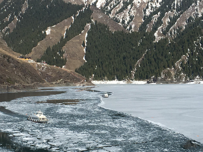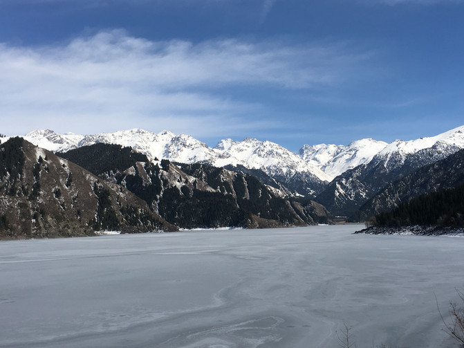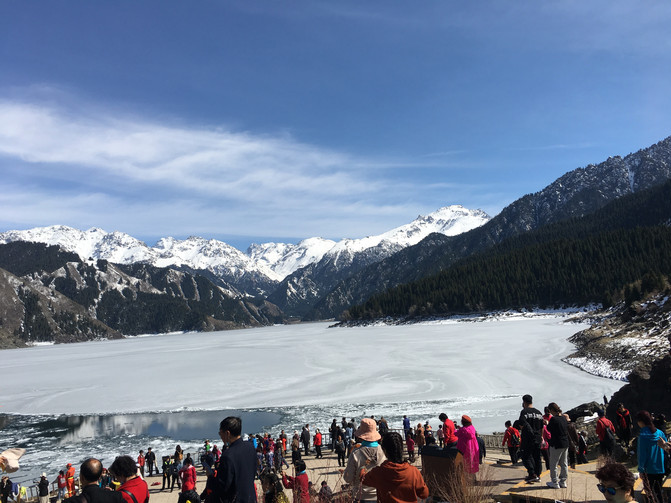 因为是传说中王母娘娘沐浴的地方,所以天山天池古称"瑶池",位于昌吉回族自治州阜康市境内,博格达峰北坡山腰,是以高山湖泊为中心的自然风景区,东距乌鲁木齐市100公里。天山天池海拔1980米,南北长3.5公里,东西宽1公里多,最深处103米。天山天池,雪峰倒映,云杉环拥,碧水似镜,风光如画,为著名避暑和旅游胜地。景区入口处到天池的一段曲折向上的山路是于景区的接驳大巴完成,全程大概35分钟。