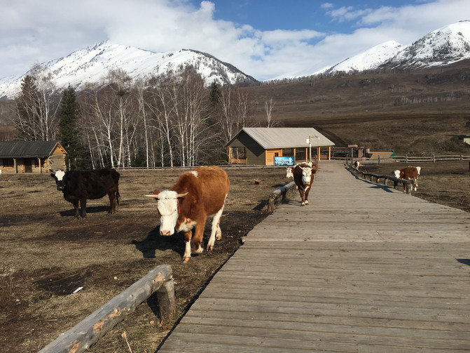 。今天整个上午都在禾木村里自由游览。吃过简单的早餐后,9:30穿过禾木桥徒步往禾木观景台方向进发。