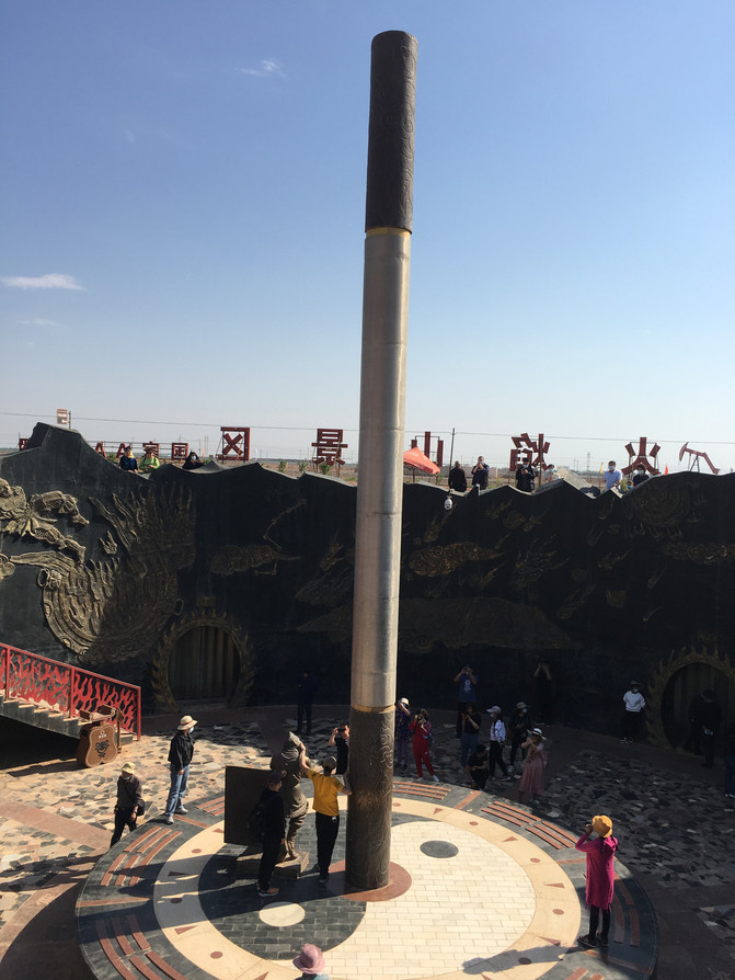 在地宫内圈的中心,高高伫立1着一根12米高的巨大温度计,这根落成于2004年立体造型温度计,名叫"金箍棒",曾获大世界吉尼斯之最