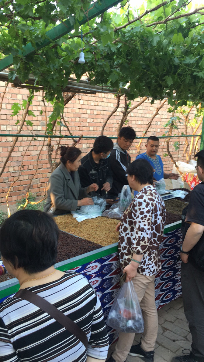 由于是4月份,葡萄还没成熟,只能品尝葡萄干了,吃得好再买,基本上80到120元一公斤。我们团队购买了大概4千元的葡萄干,