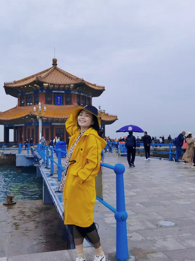 天上下着雨,找到栈桥时就有不少游客在了。我们先到处走了走,当雨停后,我们在沙滩上拍照,还捡了不少海带。