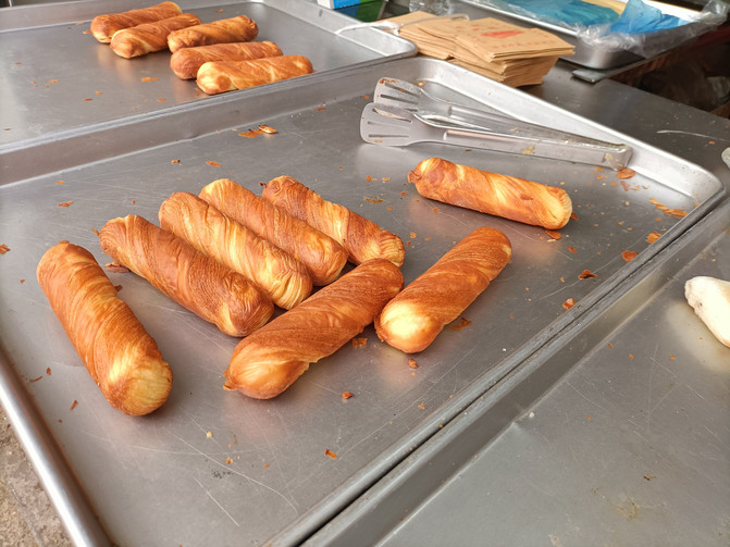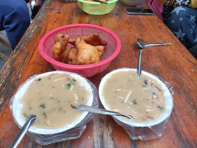 5月24号,一大清早我们就找了个网红早点店,孙家早点。,我和丽华要了两碗甜沬,然后糖果子,油条那些啥玩意全都要了。