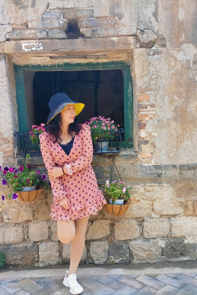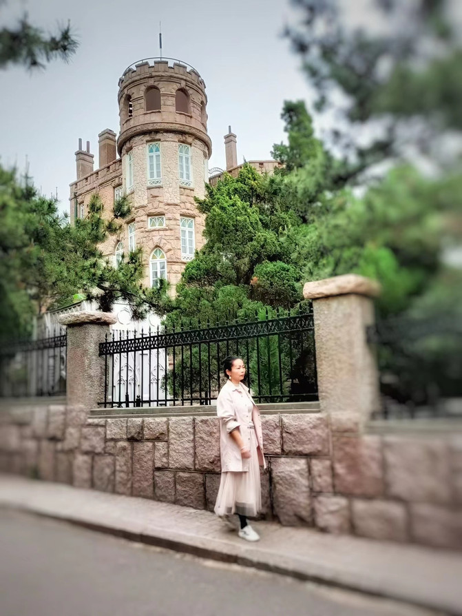 当我们继续行走时,看到一老者帮一中年美少女拍照时,我凑过去看了下,确实角度很好。在等拍照的过程中听到他的讲解,我猜想他是位当地人而且是做讲解工作的,而拍的这幢楼名为花石楼,是八大关里最著名的一幢。