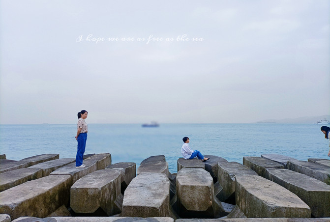我沉浸在海边的夜色里,拍照,听海,看着海岸的灯火亮起,想起了还有三个在外面沙滩等我的姐妹,于是踏着那些青年的歌声在夜色里渐行渐远。