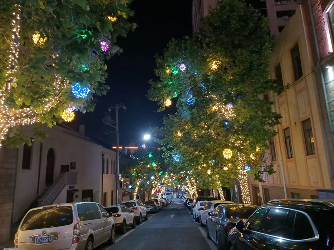 晚上,我们回住所的路上,好美哦,就像童话世界里的一样。