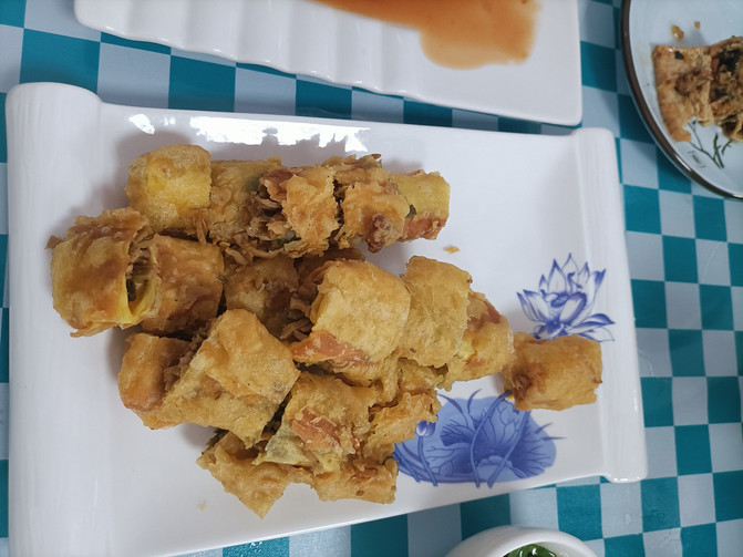 出来后去吃博山菜。都说那个豆腐箱必点,博山小酥肉,博山春卷也都来一份。最后搞得酸辣土豆丝最跑火,那个豆腐箱都吃不下。