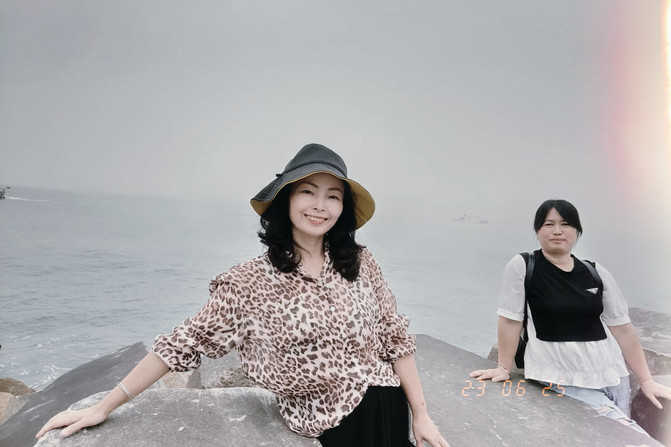 人开始多起来了。虽然天气不太好,但听着海浪的声音,让人很是减压。