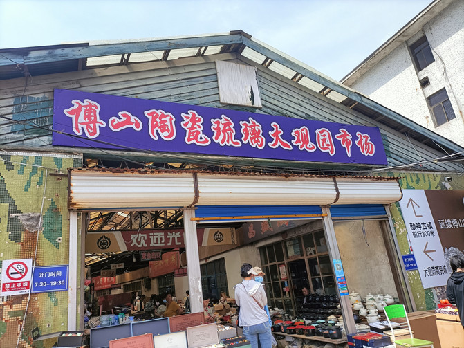 八大局门囗有很多人公交司机举了个牌,是去博川琉璃大观园与颜神古镇的专线,8元一人,我们上车了,来淄博的人还是挺多的,一小会车满人了就走,到那地一个半小时,先去逛了逛琉璃大观园,茶具还是便宜,三四十元一夽的,还有小玩件,