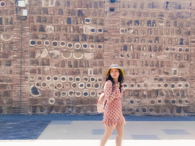 从小鱼山下来又经过大学路,依然是排着队等着拍照的人群们。我们随便找了一处红墙也拍了几张。