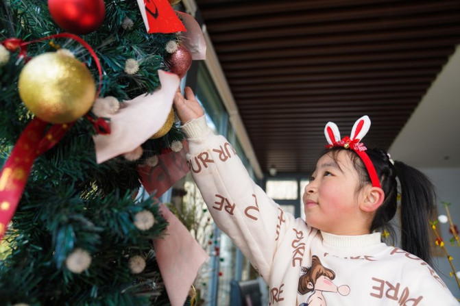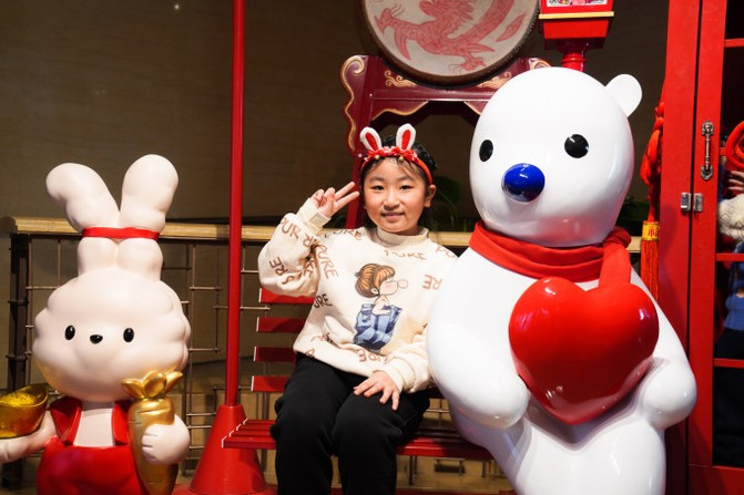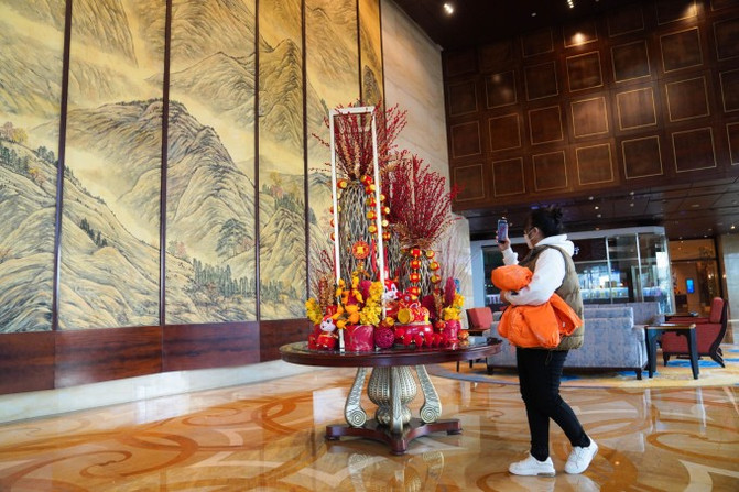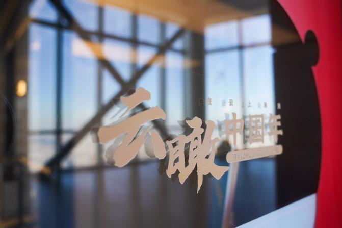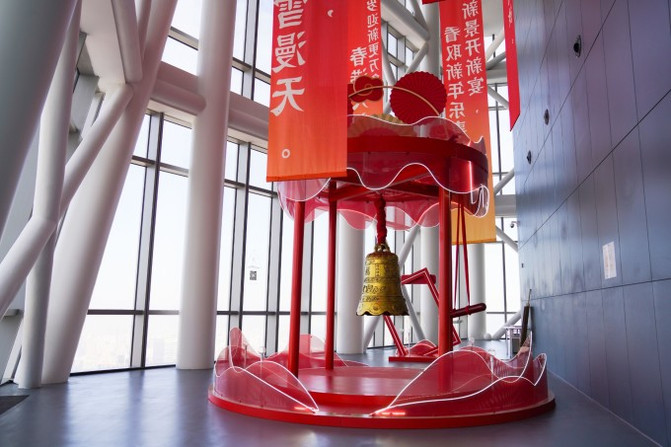 81层内部设置有透明观景区、沉浸式体验区、多媒体展示区与空中水吧等多个功能空间。祈福的巨钟、玻璃上的红字等等,到处透露着喜庆的年味。