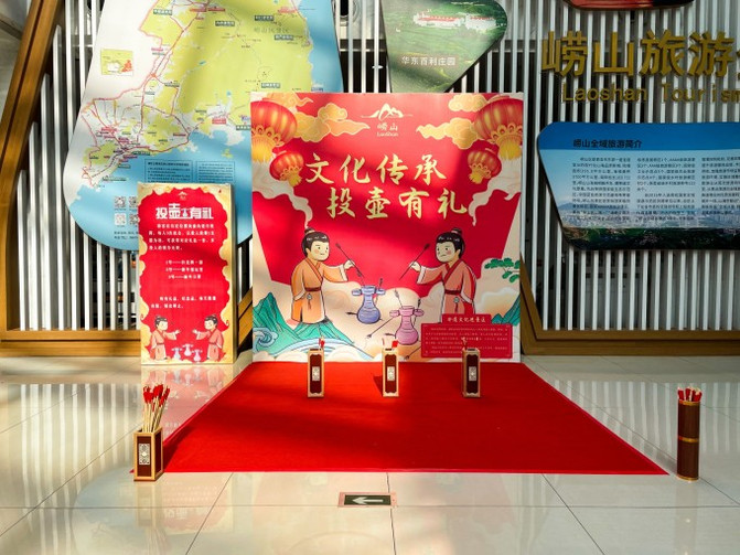 春节期间,崂山风景区各游览区的游客服务中心一系列各具特色的活动精彩纷呈:在九水游览区零换乘大厅设有浓浓节日氛围的“约惠崂山中国年”拍照打卡墙。