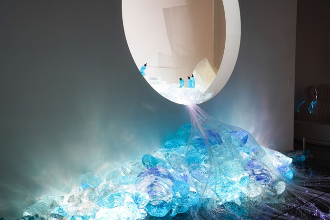 景点门票180元,包含81层的云上海天观光厅,与80层的艺术中心。艺术中心有不同的陈列空间,各种有趣且美感十足的艺术品,在光影的映衬下,换发出不一样的光彩。展厅里陈列的展品都是用不同的材料创作的,探讨的是物质与思维,带来艺术创作的新思与重构。