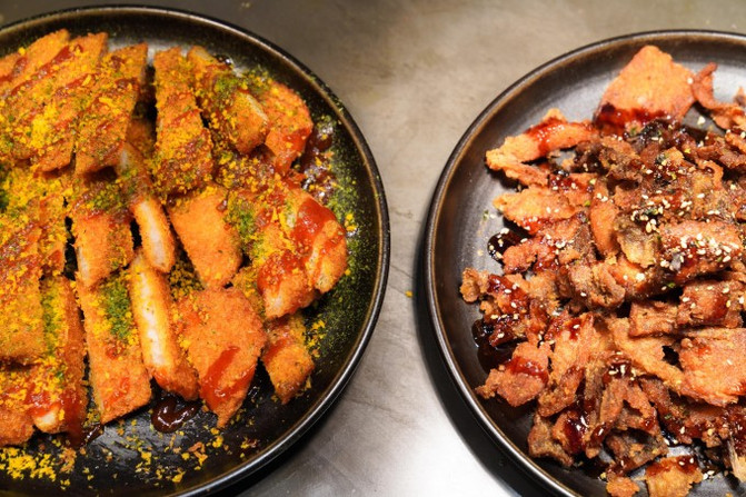 种类多样的冷锅串串,香辣可口;以及铁板上“滋滋”冒油的进口牛排、羊排、澳洲西冷,肉汁四溢,口口飙汁!