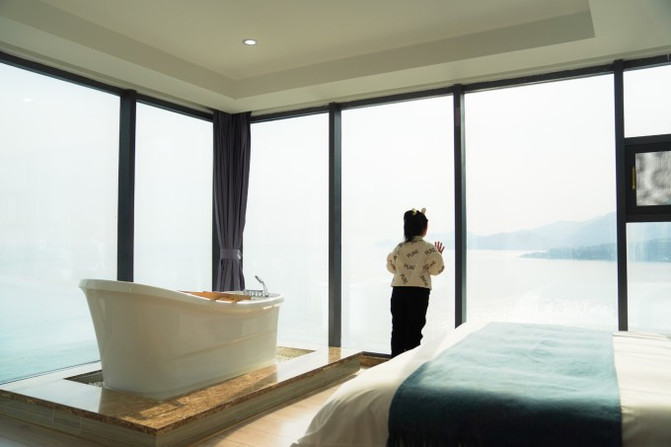 夜宿陌海美墅,陌海美墅距离仰口景区很近,十几分钟的车程,并且在沿海的海岸线上,位置绝佳。静待陌上花开,一起面朝大海。这是一家集咖啡厅,住宿,餐厅为一体的民宿,一进门的海景餐厅,咖啡厅,都是纯海景,海景大浴缸,极简装修风,谁能拒绝的了呢。