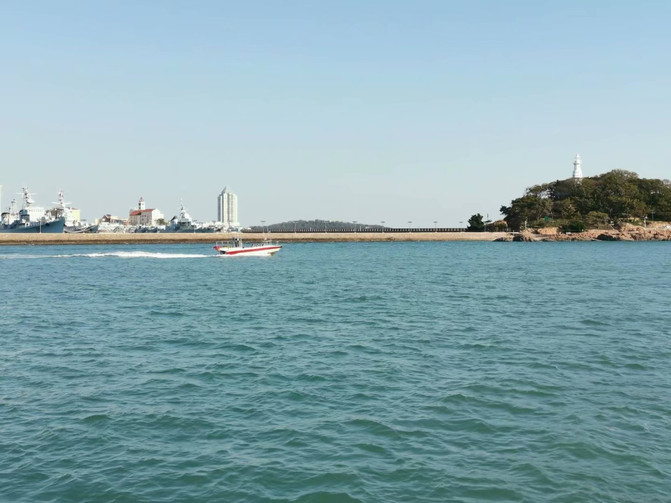 为了体验郁达夫海上看青岛的境界,我们船游青岛湾。