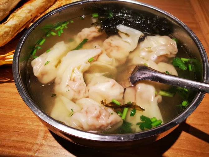 到了青岛已是下午2点,幸亏午餐简单,每人一碗当地小吃青岛馄饨再加一个火烧(也就是煎饼),那碗馄饨超大,共有10个,里面的虾很新鲜,我只吃了三个,再把那个甜的火烧干掉了,好吃又饱肚。