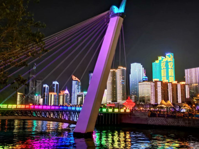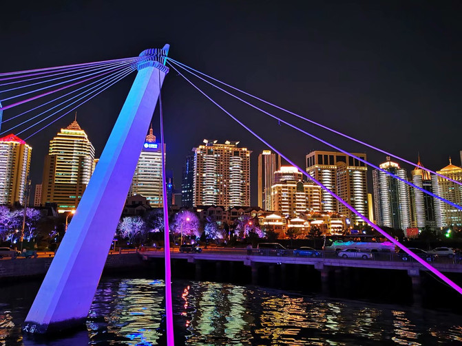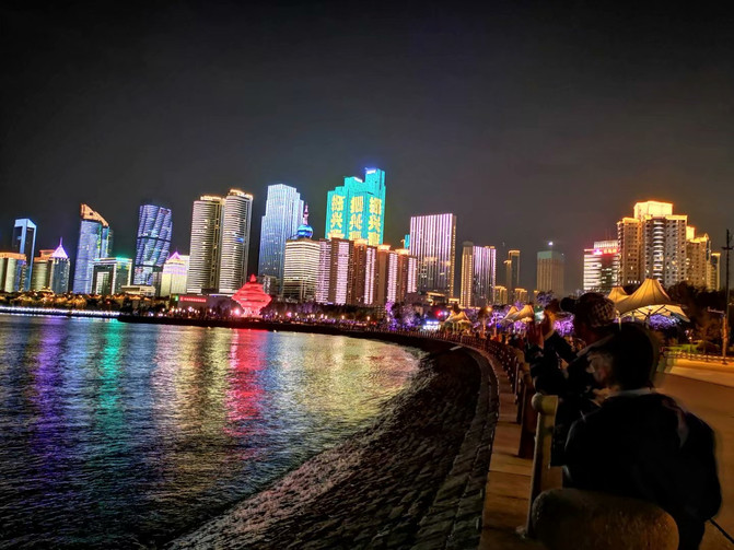 虽然没有看到灯光秀,但青岛的夜景非常美丽,胜过白天的船游,璀璨的夜景也是钱堆出来的。祖国的每个城市,对打扮自己的外貌从不吝啬,因为这是展现给外人看的、体现国力雄厚不可或缺的。