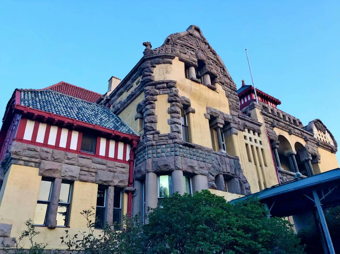 在夜幕快降临时来到德国总督府旧址。