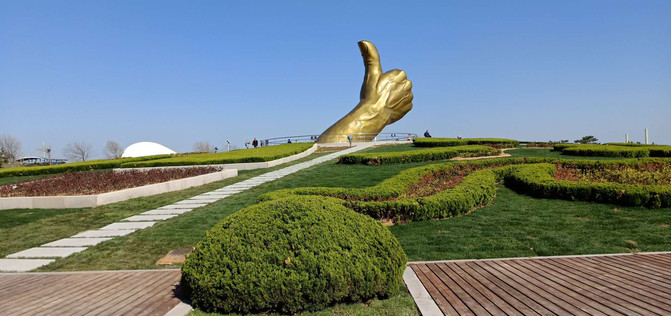 这里矗立着巨大的北京奥运火炬与奥运五环,港湾中停满的帆船甚是壮观,这儿也是欣赏日落的绝佳之地。