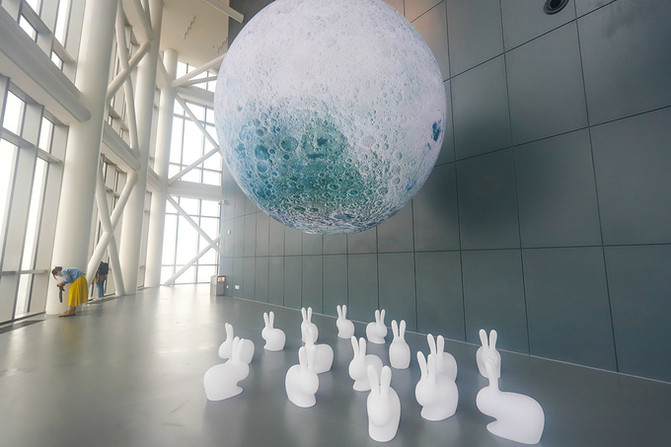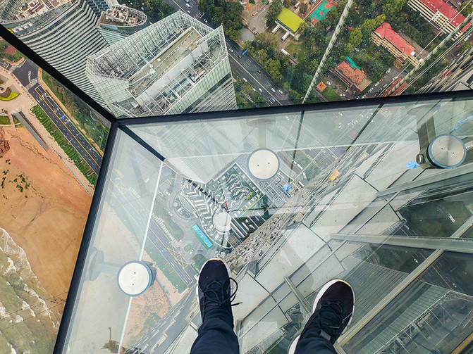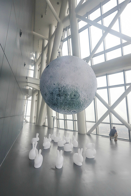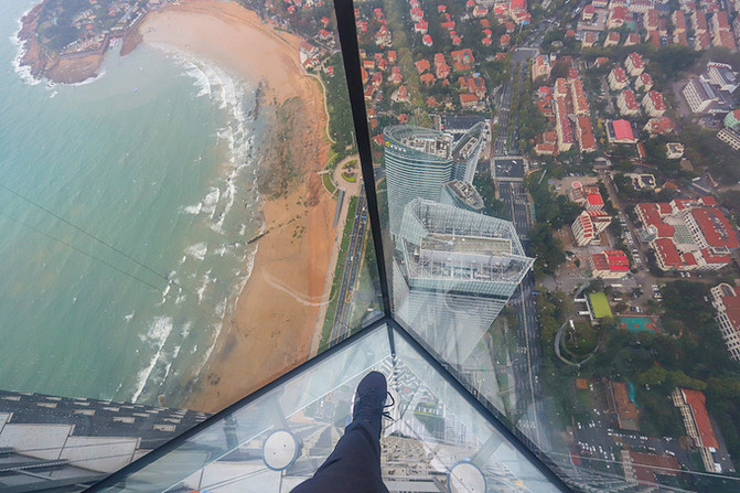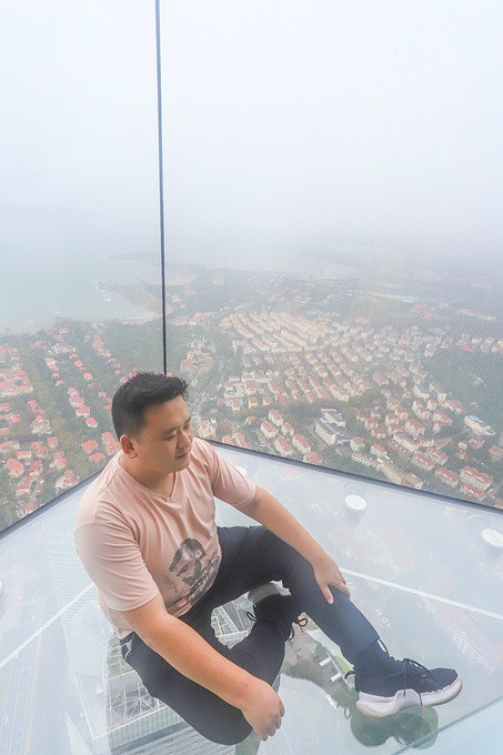 吃过午饭,趁着微冷的小雨抵达了青岛新晋网红打卡地——海上云天艺术中心。经过安检,步入中心,电梯把我们送上330米高,81层的观光厅。