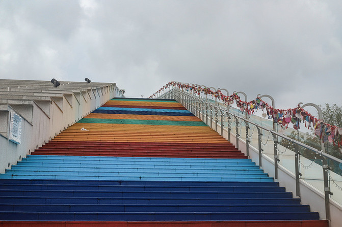 目前的海尔世界家电博物馆已经变成爱情圣地了哦,博物馆外面的彩虹天台堪称青岛旅游必打卡网红打卡地。