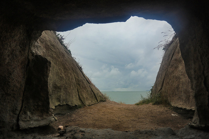 岛距东侧海岸370余米,有长长的海堤与陆地相接。此岛原是陆地的一部分,在海浪长年累月的冲蚀雕凿下,才与陆地分离。
