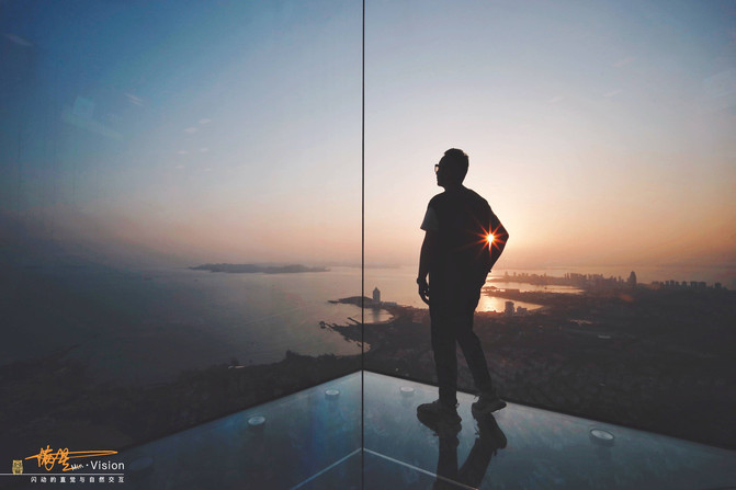 最让人眼前一亮的,还属城市观光厅打造的全国首个悬挑式全景观光平台——钻石角。钻石角共3个,单个可容纳5-8人。站在钻石角中,游客可悬空俯瞰城市,与外部自然景观融为一体,在欣赏美景的同时,也能感受到心跳加速的刺激体验。夕阳西下,在钻石角拍摄是最佳时刻,搞点小创意,是火爆朋友圈的最高标准。