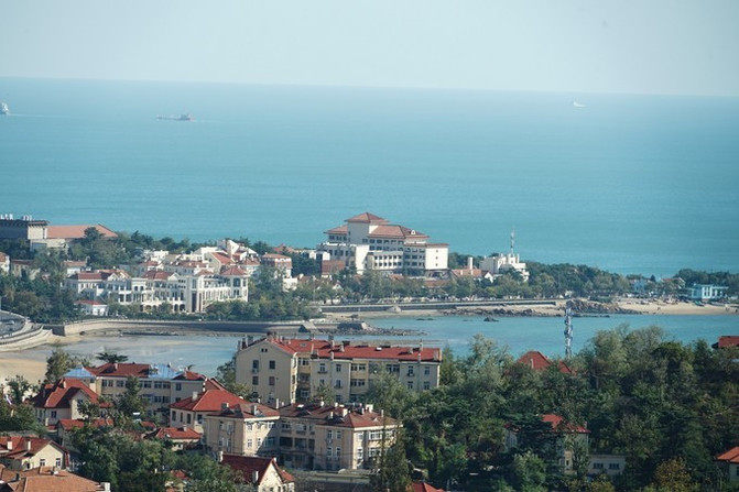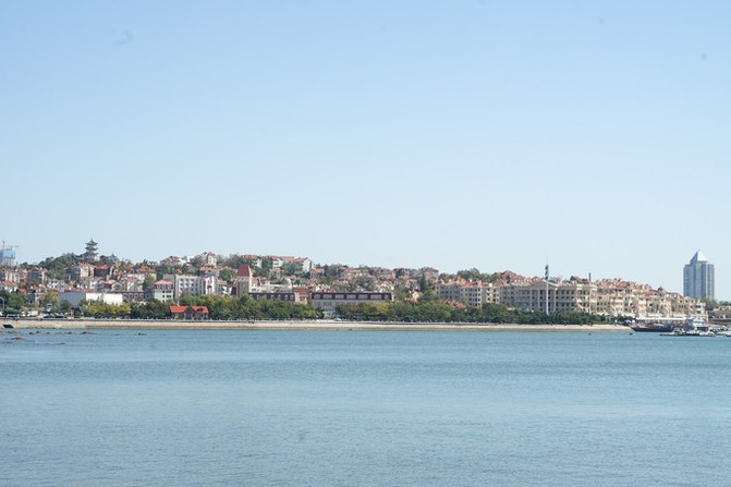 信号 山南 面可以眺望到栈桥与海军博物馆的身影,在这晴天之下,即使 胶州 湾对面的 黄岛 也被收入眼帘之中。