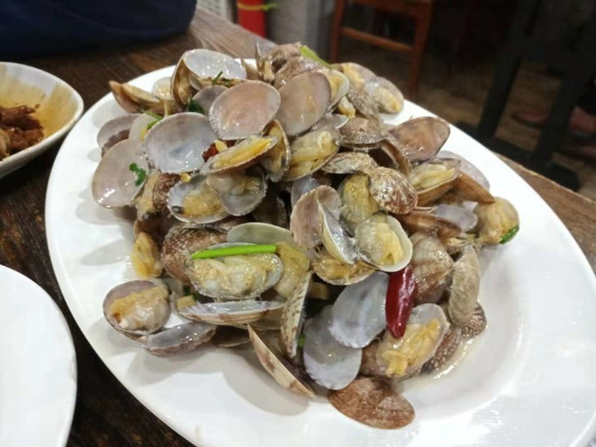 上图是在一家小店吃的辣炒蛤蜊,很常见的海鲜。