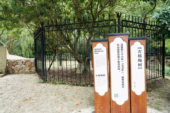启园里还有一颗康熙皇帝手植的杨梅树,如今已被圈起来保护。