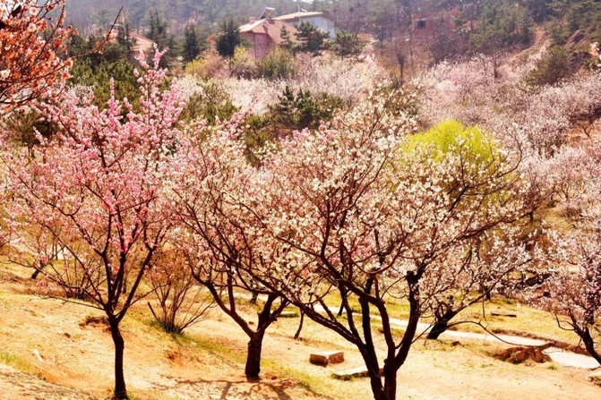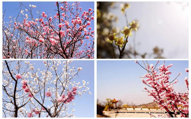 北方的梅花一般开于3、4月份,青岛李沧区的十梅庵,是中国长江以北最大的梅园,占地200公顷,有梅花一万多株,超过一百个品种,被誉为“梅花之乡”。这里地处崂山脚下,相传古代是一片荒山野岭,后有十位美丽的女子在此结草为庵,结伴修炼,得道成仙而去,留下十株高大的梅树,盛开的梅花艳似朝霞,白如瑞雪,于是就有了“十梅庵”这样一个富于传奇色彩的名字。