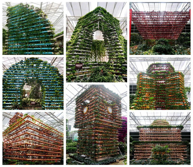 菜博会上还有用蔬菜“建造”的各种造型,有飞机、风车、汽车、佛塔等等,让人惊叹。