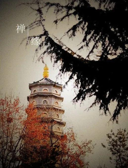 寺后东侧小山有八角七级砖塔,耸立云表,禅意高远。