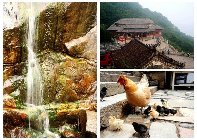 泰山上也有不经意间看到的奇景,如造型奇特如福建土楼的天门居,和山道上不避人的小鸡群。