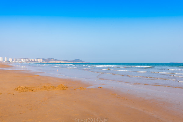 西海岸新区的金沙滩,是目前青岛最大的海水浴场,呈月牙形东西伸展,全长3500多米,宽300米。