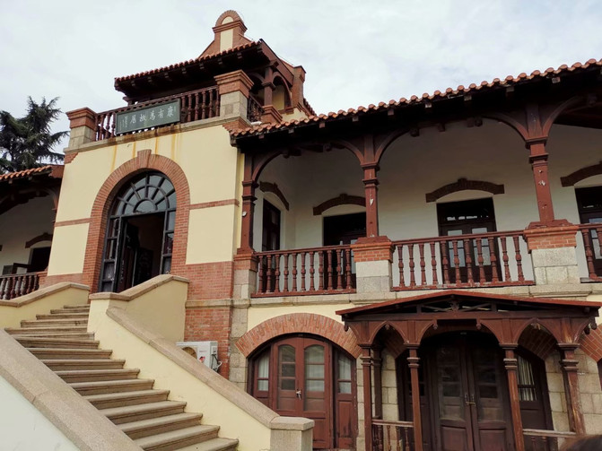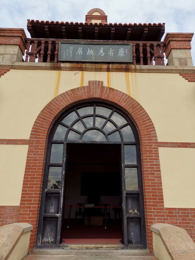 在八大关景区的康有为故居始建于1899年,三层德式砖木结构建筑,为德占时期总督府要员官邸。这座德式三层砖木结构建筑静静地伫立在一片居民区中,欧式的弧形建筑风格搭配中国传统的红瓦、红漆,让这栋别墅看起来尤为突出。它历经风雨,见证着时代的变迁。1924年康有为先生购买此房作为寓所,直至1927年3月病逝于此。