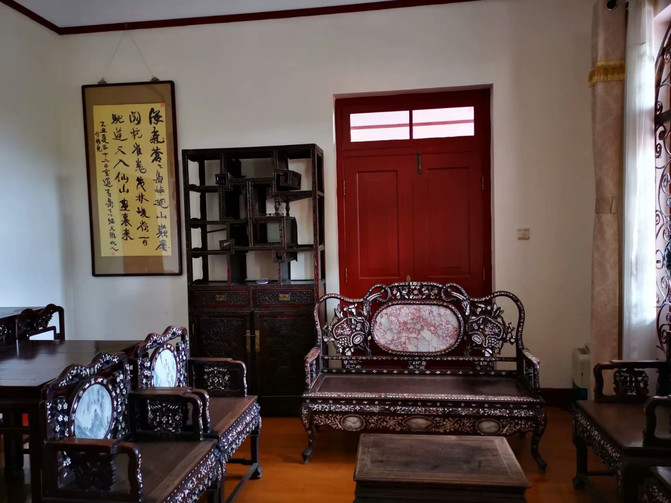康有为来青时,当时居住青岛的清朝第二代恭亲王溥伟欲举家北迁大连,二人私交甚笃,溥伟便将其家具赠送先生。现故居内起居室、会客室、书房等室内家具,均为当时亲王所赠。