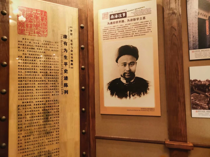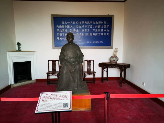 这儿是康有为先生终了之所,他上天游了,留下了一段红底金字:法既积久,弊必丛生,故无百年不变之法。这一周期率,振聋发聩……