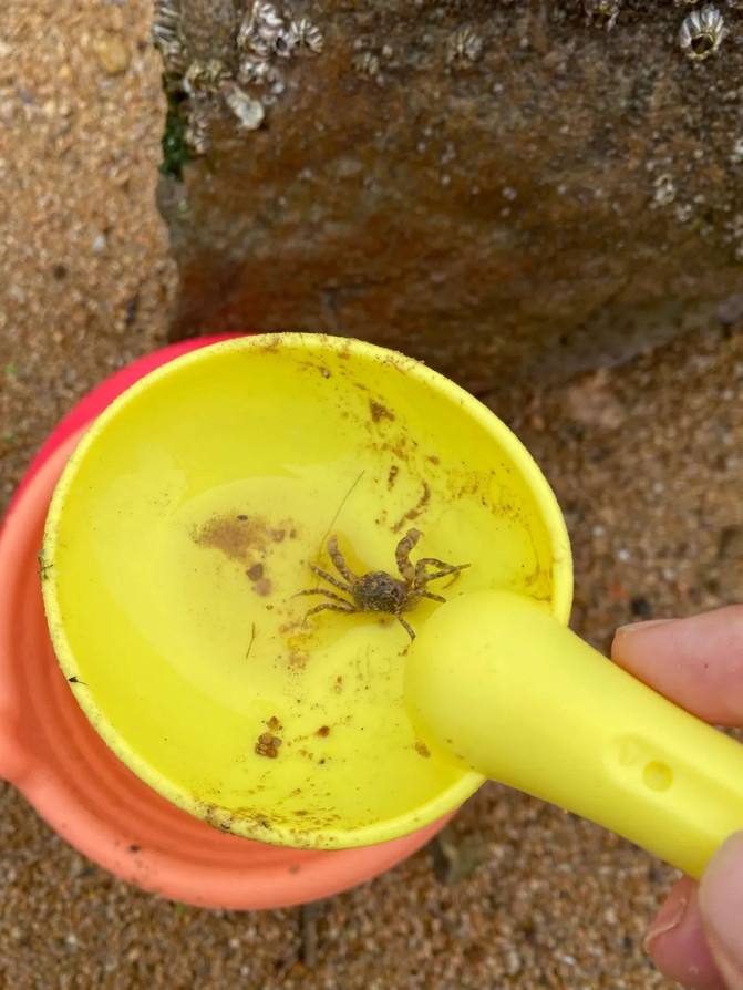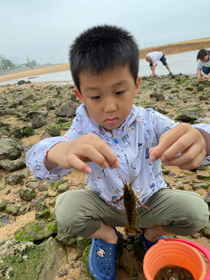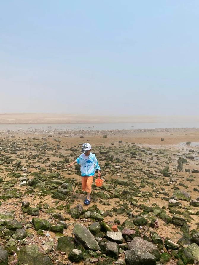 祺小宝最近正在读一本关于滩涂的书,学以致用,捡到自己书中认识的扁玉螺,满脸的满足感。