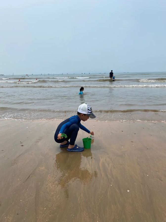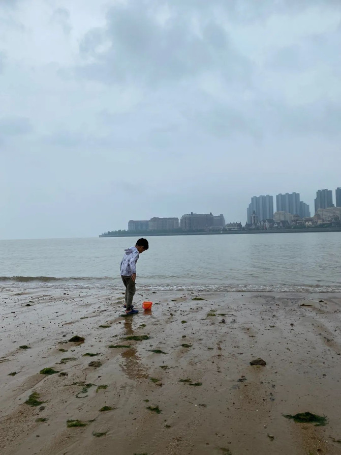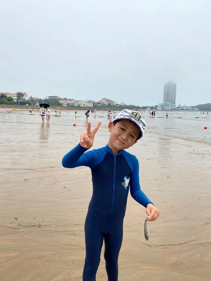 即便是住进了主城区,祺小宝最感兴趣的事情仍然是捞鱼捕蟹,好在青岛最不缺的就是海边的沙滩和滩涂,离香格里拉酒店不到四公里的第一浴场,替代了黄岛的浅滩,成了祺小宝消遣的去处。