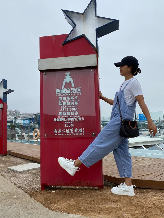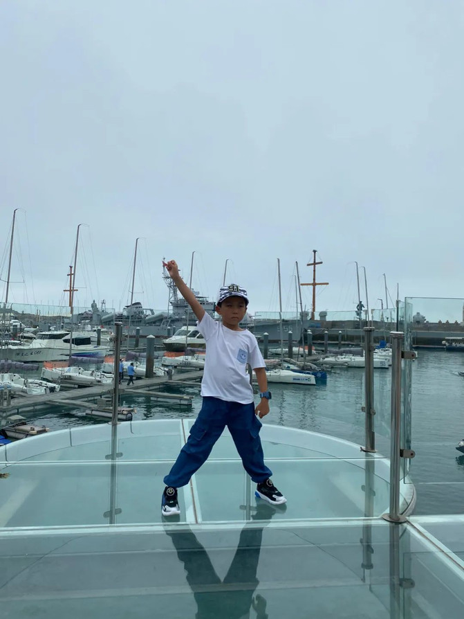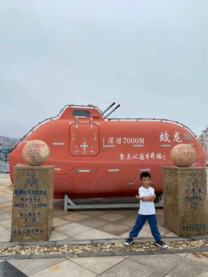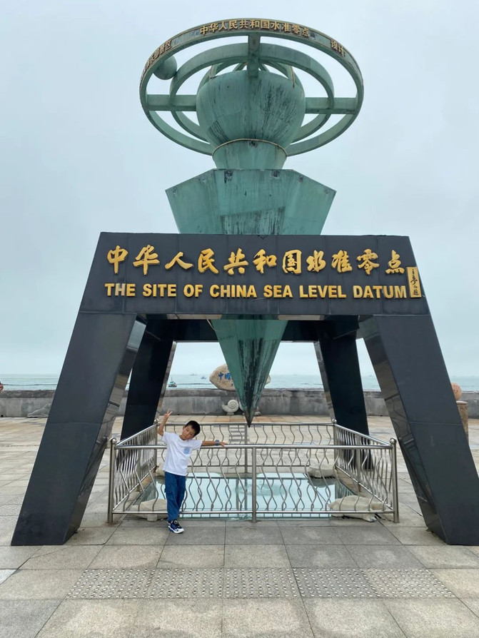 在青岛最后几天,总得刷一下代表性的景点,在水准零点景区,明显晒黑了的祺小宝显得结实了不少