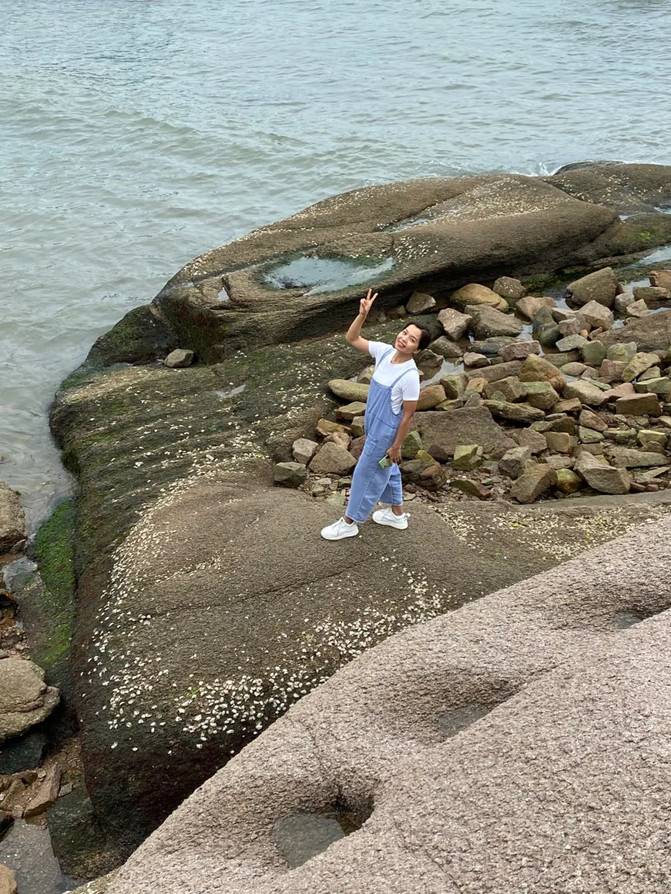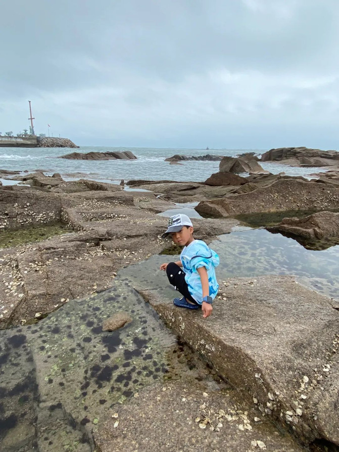 旁边的岩滩上走一走,祺小宝的没完没了的赶海时光又要开始了!只是今天轻装上阵的祺妈很在状态,祺爸正好可以看看海发会儿呆。