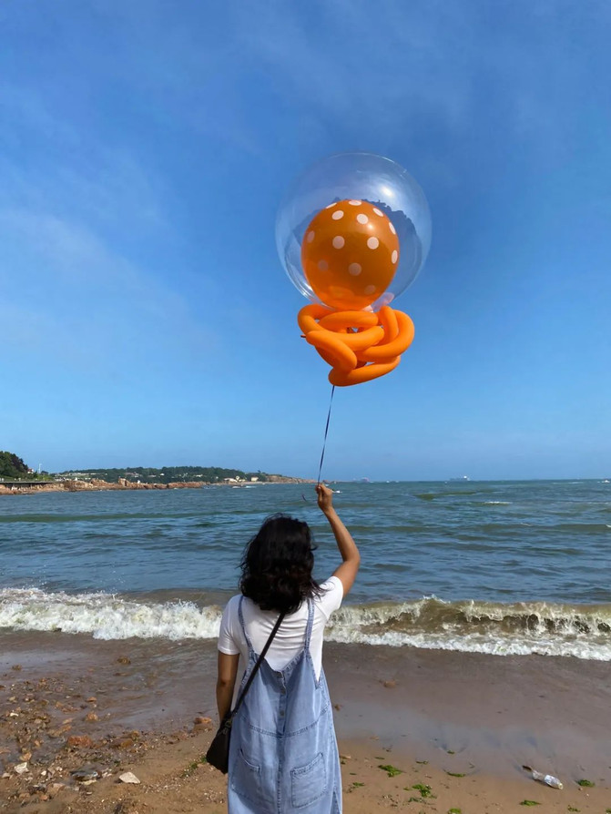 这里随处可见拍婚纱的情侣,我们索性来一场气球Style