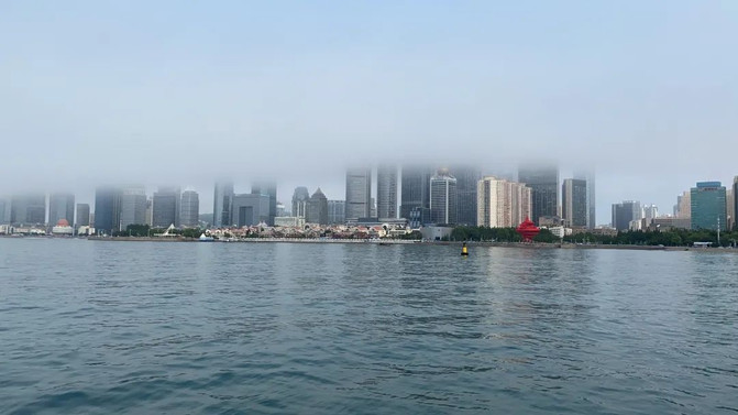 青岛夏日的天空,总是阴晴不定,城市的高楼常常隐没在云雾之间,看起来仙气十足,难怪崂山出老道,这云里雾里的,难免引人遐想。