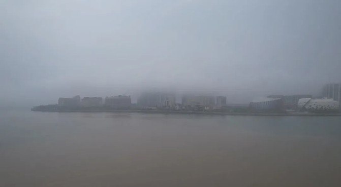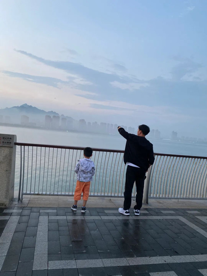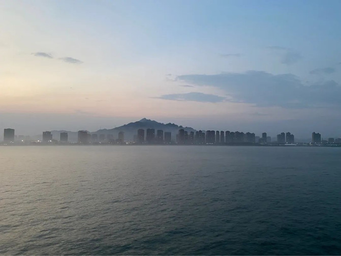 晚霞映红了黄岛的天空,城市在雾气中像极了悬于空中的海市蜃楼,傍晚亦或早晨,星光岛这条环岛景观步道绝对是遛弯儿的好地方,一圈下来正好接近6公里。